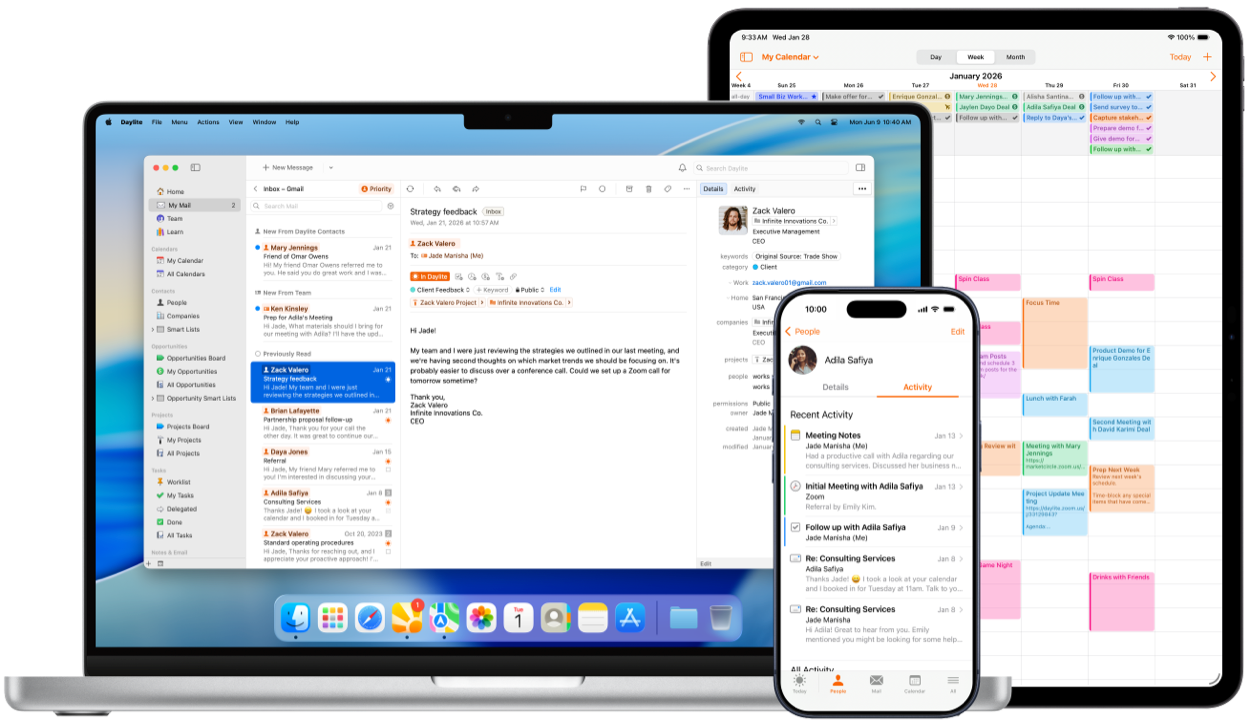 Daylite is an all-in-one business management platform designed for Apple-based service businesses that need to manage the complete customer journey from initial contact through project completion and repeat business.